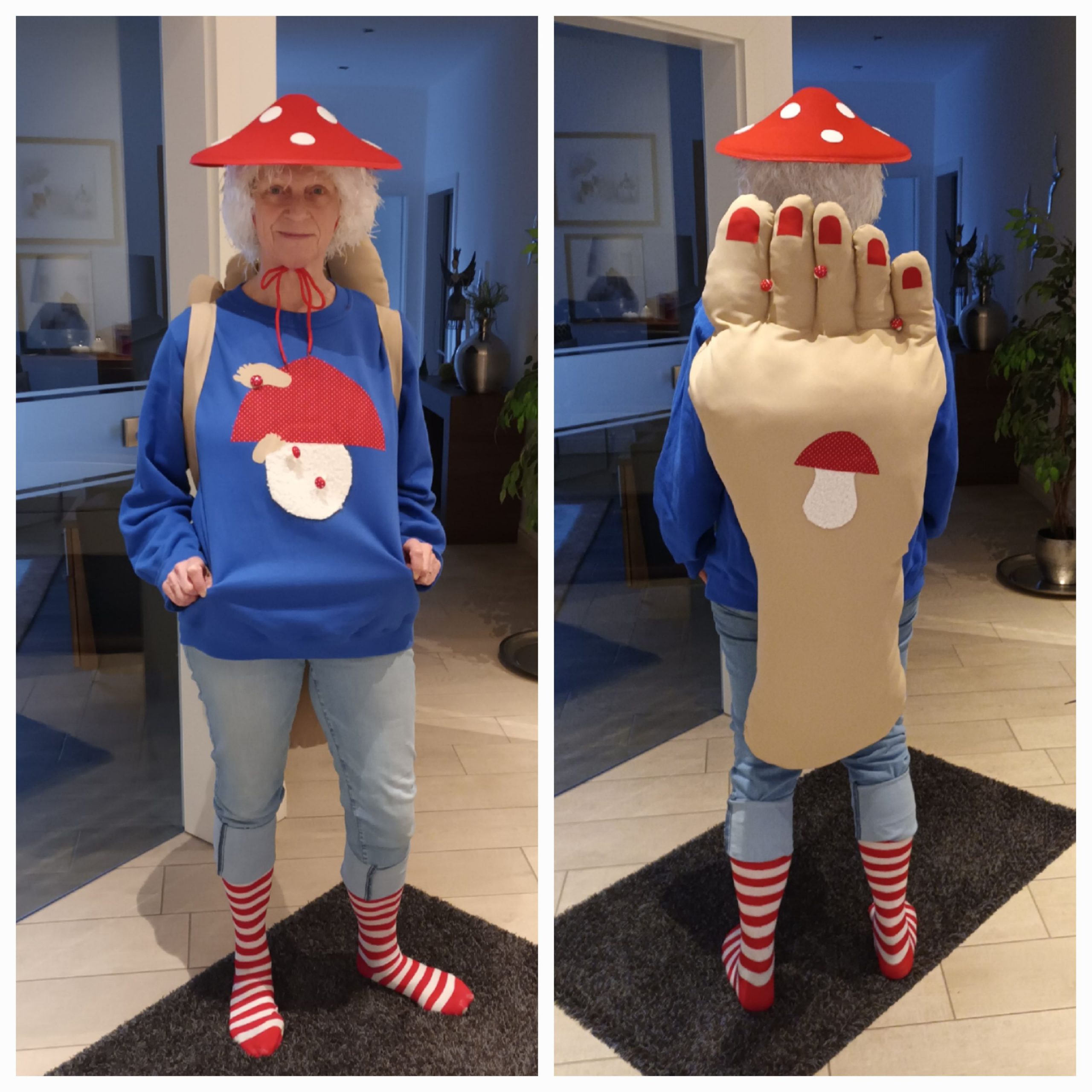 Regelgetreu wollen wir, wie schon mal beschrieben, als FUSS-Gruppe mitmarschieren. Das bedeutet, wir nehmen die Vorschrift der KUK sehr wörtlich und verkleiden uns alle als FÜSSE! Das kann z. B. ein Fuß mit Fußpilz (im Foto wäre dazu ein Vorschlag) sein, oder ein Käsefuß, oder ein Stinkefuß, oder ein Hasenfuß, oder, oder ,oder. Das Fuß-Modell wird allen Jecken gegen den Materialpreis von ca. 20 EUR zur Verfügung gestellt, bei der lustigen Ausgestaltung können sich alle Aktiven voll austoben.